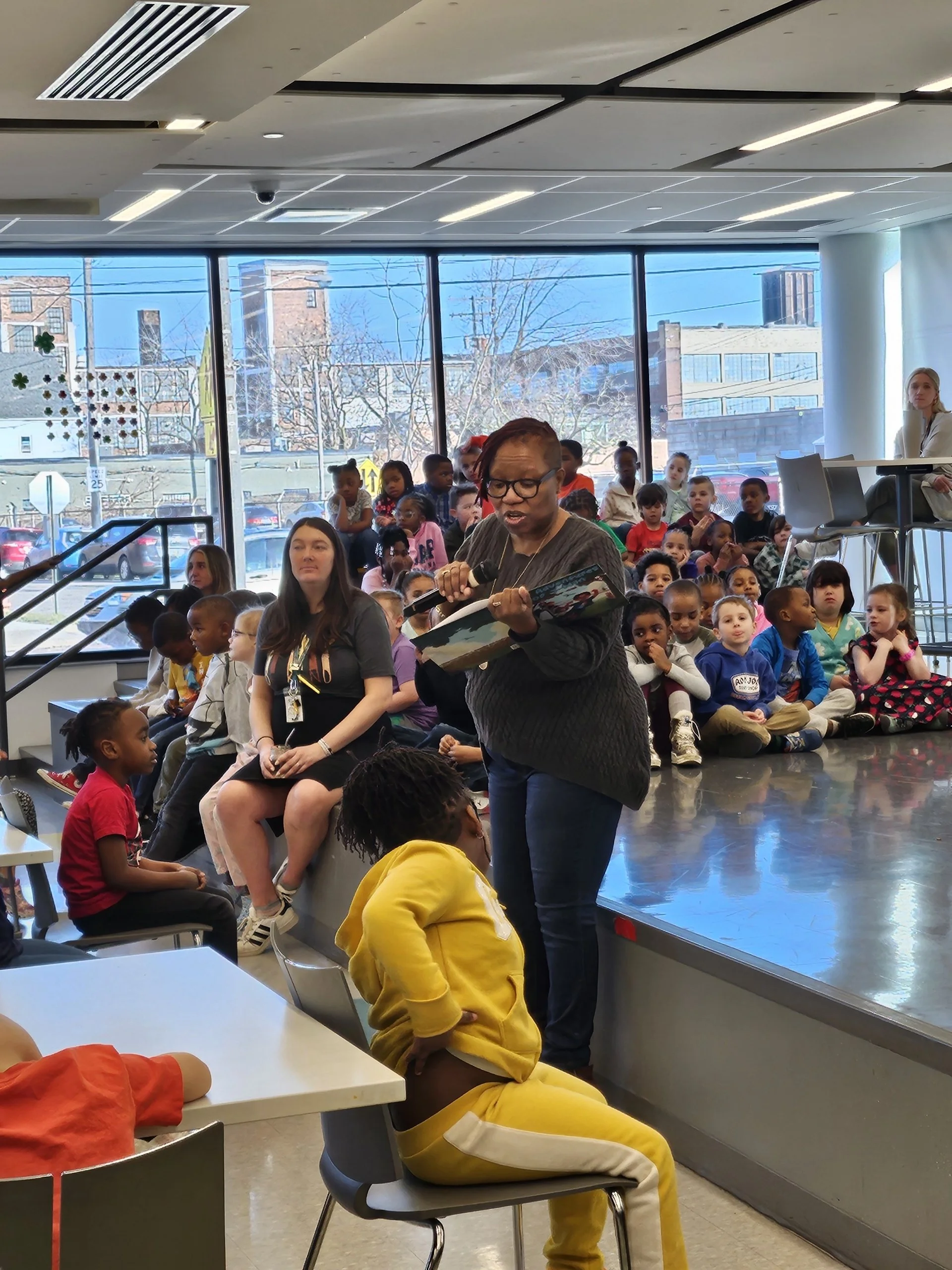 The Adventures of J-Man reading at Campus International School, Cleveland, March 4, 2024